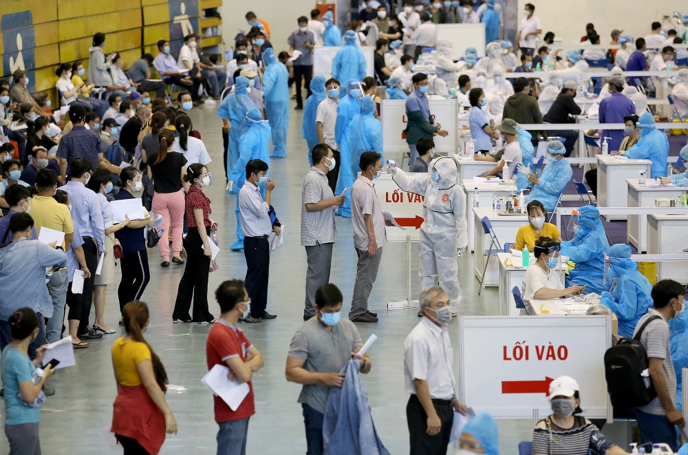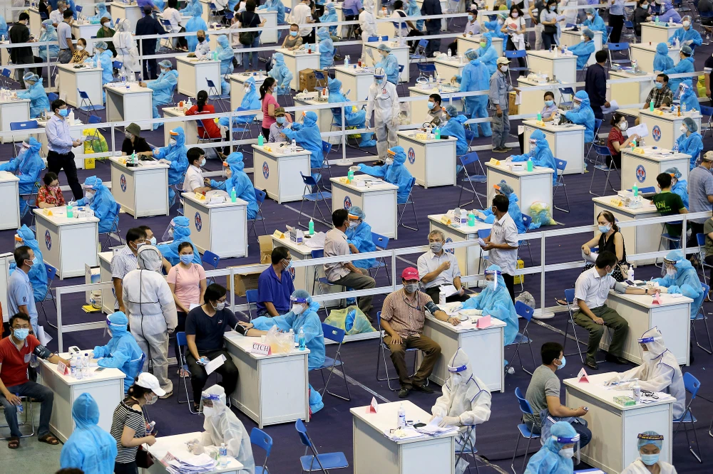 Chương trình tiêm vaccine tại Nhà thi đấu Phú Thọ dự kiến kéo dài đến 26-6 với số người được tiêm khoảng 30.000.