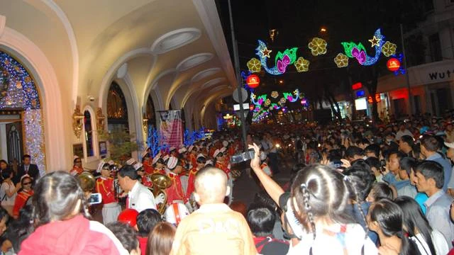 Dạo quanh các đường phố như: Lê Duẩn, Đồng Khởi, Tôn Đức Thắng, Huỳnh Thúc Kháng dòng người và xe cộ đông đúc. Nhiều ngã tư bị kẹt xe. Ghi nhận của phóng viên lúc 21 giờ 30 tối, tuy lượng người đổ về khu trung tâm càng lúc càng đông nhưng không xảy ra tình trạng chen chúc, kẹt xe kéo dài như mọi năm.