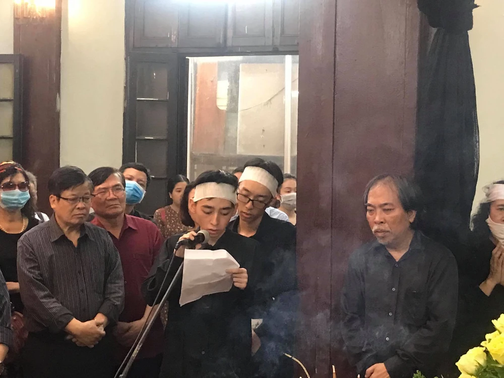 Con trai nhà thơ Hoàng Nhuận Cầm đọc bài thơ: 'Nếu tôi chết' của ông tại lễ tang. Ảnh: VT