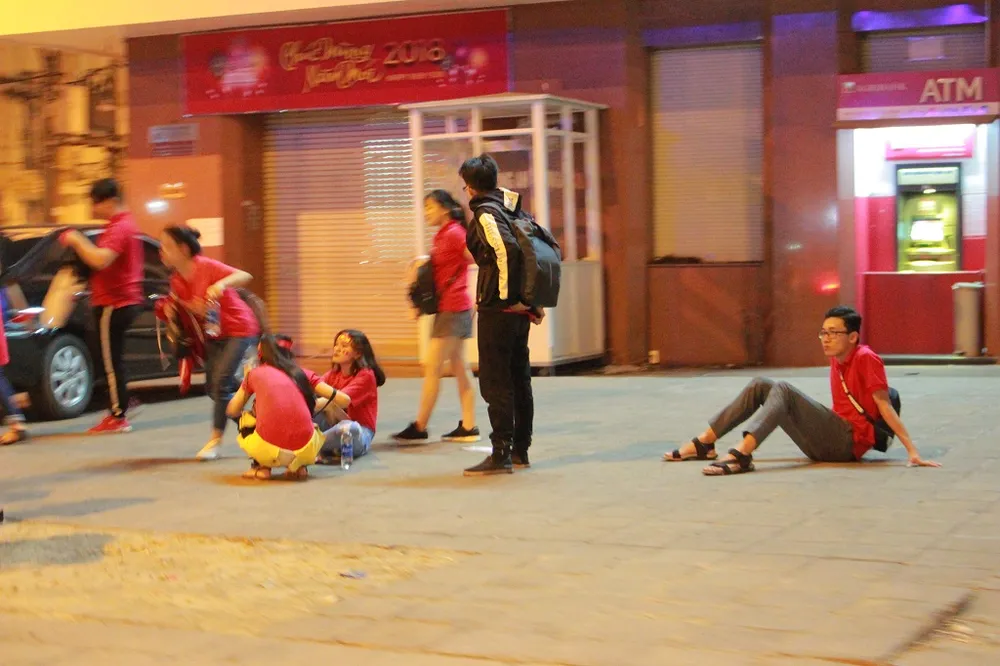 Có người thì lầm lũi đi bộ một mình, có nhóm thì cùng ngồi bệt xuống, vẫn chưa thoát khỏi sự tiếc nuối dành cho các cầu thủ trẻ.