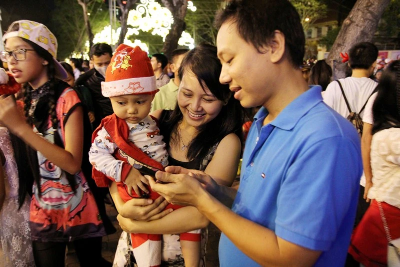 Cả nhà xuống phố đón Giáng sinh. Ảnh: HOÀNG GIANG
