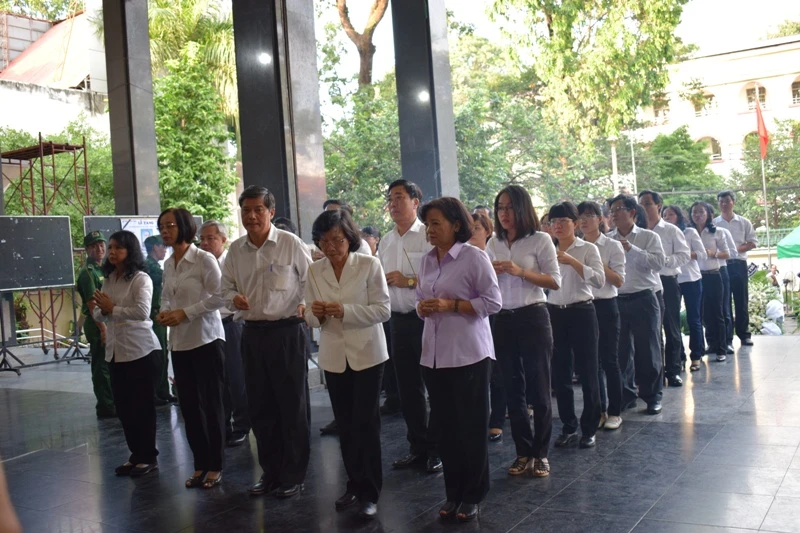 Bắt đầu từ 16h chiều, rất đông các đoàn lãnh đạo, nguyên lãnh đạo TP.HCM cùng người thân, nghệ sĩ, đồng nghiệp đã đến nhà tang lễ Lê Quý Đôn (Quận 3, Tp.HCM) viếng ông Dương Đình Thảo (Sáu Thảo).