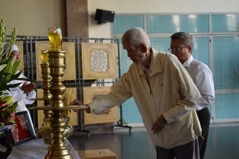 Ông Phan Nhẫn (90 tuổi) đến viếng người đồng nghiệp. Ảnh: NGUYỄN TRÀ