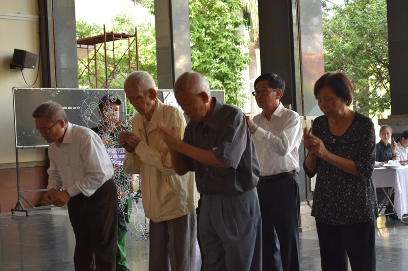 Bà Phạm Phương Thảo (trái, nguyên Phó Bí thư Thành ủy, nguyên Chủ tịch HĐND TP.HCM (khóa VII) cùng nghệ sĩ Kim Cương có mặt từ rất sớm. Ảnh: NGUYỄN TRÀ