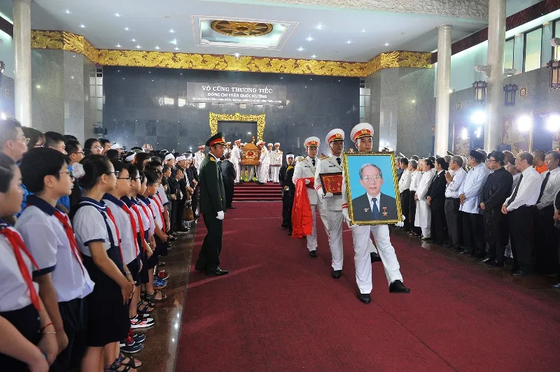 Tham dự buổi lễ truy điệu có Phó Thủ tướng Thường trực Chính phủ Trương Hòa Bình, nguyên Chủ tịch nước Trương Tấn Sang, nguyên Thủ tướng Nguyễn Tấn Dũng, Bí thư Thành ủy TP.HCM Nguyễn Thiện Nhân, Chủ tịch UBND TP Nguyễn Thành Phong cùng nhiều lãnh đạo, nguyên lãnh đạo Đảng, Nhà nước, MTTQ; đại diện các ban ngành, đoàn thể và các địa phương...