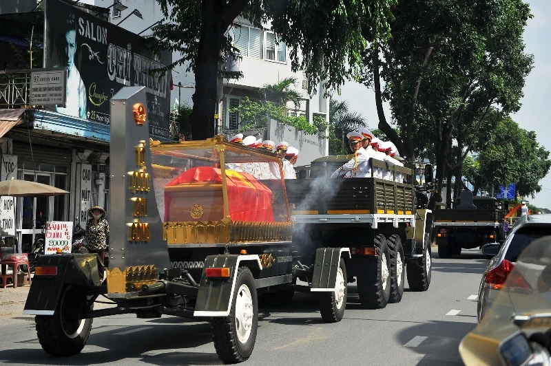 Đưa linh cữu ông Trần Quốc Hương về an nghĩ ở nghĩa trang TP.HCM. Ảnh: Nguyệt Nhi