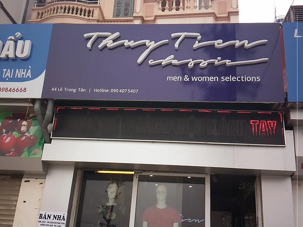 Cửa hàng thời trang này lắp thêm một biển hiệu đèn LED phía dưới để thu hút khách hàng