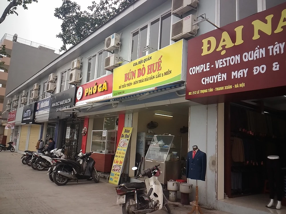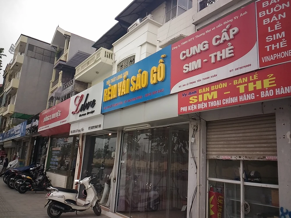 Nhiều biển hiệu trên phố Lê Trọng Tấn đã thay đổi màu sắc, phá vỡ sự đồng bộ