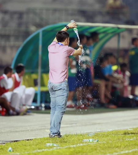 HLV Đức Thắng ném chai nước phản ứng trọng tài chính.