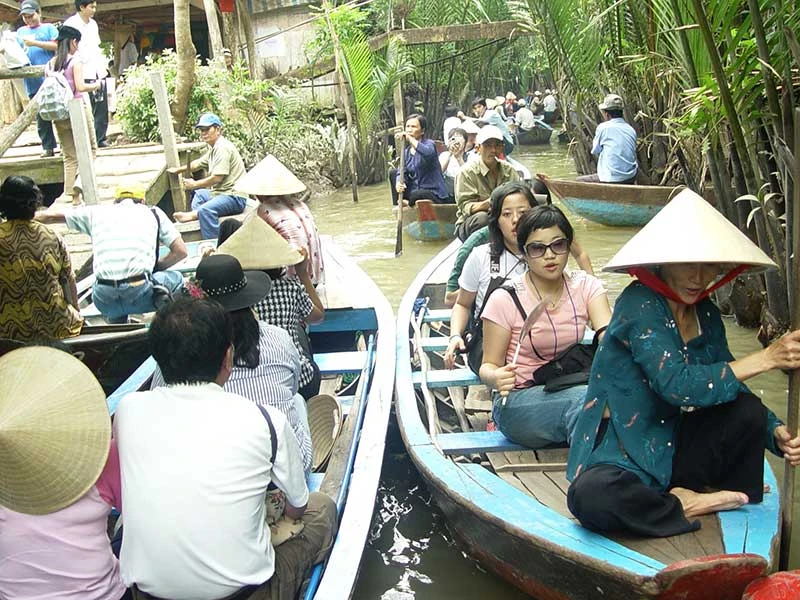 Du khách thích thú khám phá sông rạch tại các tỉnh đồng bằng sông Cửu Long. Ảnh: HTD