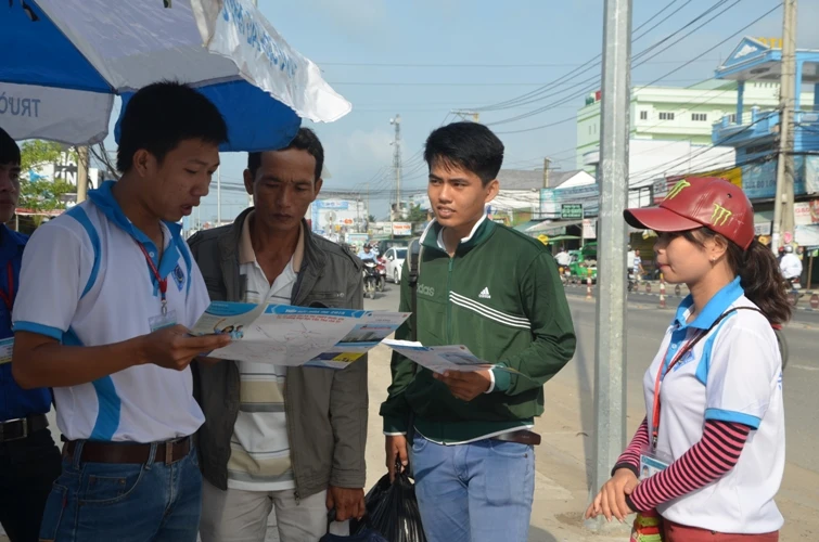 TNV tại chốt Trường THCS Trần Ngọc Quế (Cần Thơ) tư vấn điểm thi cho thí sinh, phụ huynh