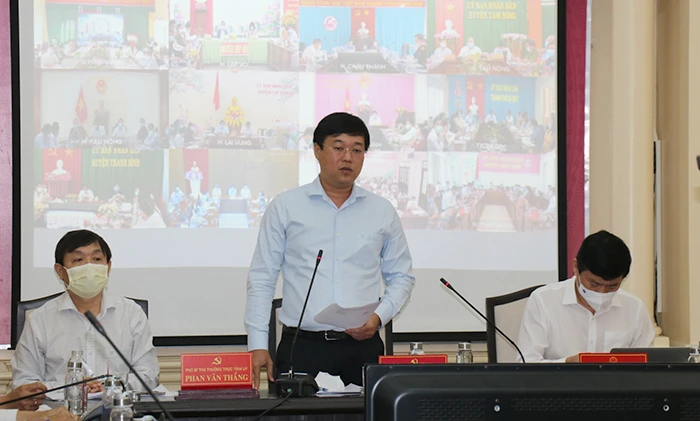 Phát biểu chỉ đạo tại cuộc họp, Bí thư Tỉnh uỷ Đồng Tháp Lê Quốc Phong ghi nhận sự nỗ lực của các ngành, các cấp để người dân đón Tết an toàn, đặc biệt là các lực lượng trực tiếp tham gia phòng, chống COVID-19.