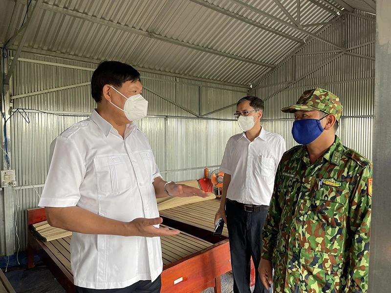 Thứ trưởng Đỗ Xuân Tuyên kiểm tra công tác cách ly tại Phòng khám đa khoa quân dân y Giồng Găng, huyện Tân Hồng. Ảnh: MINH THƯ