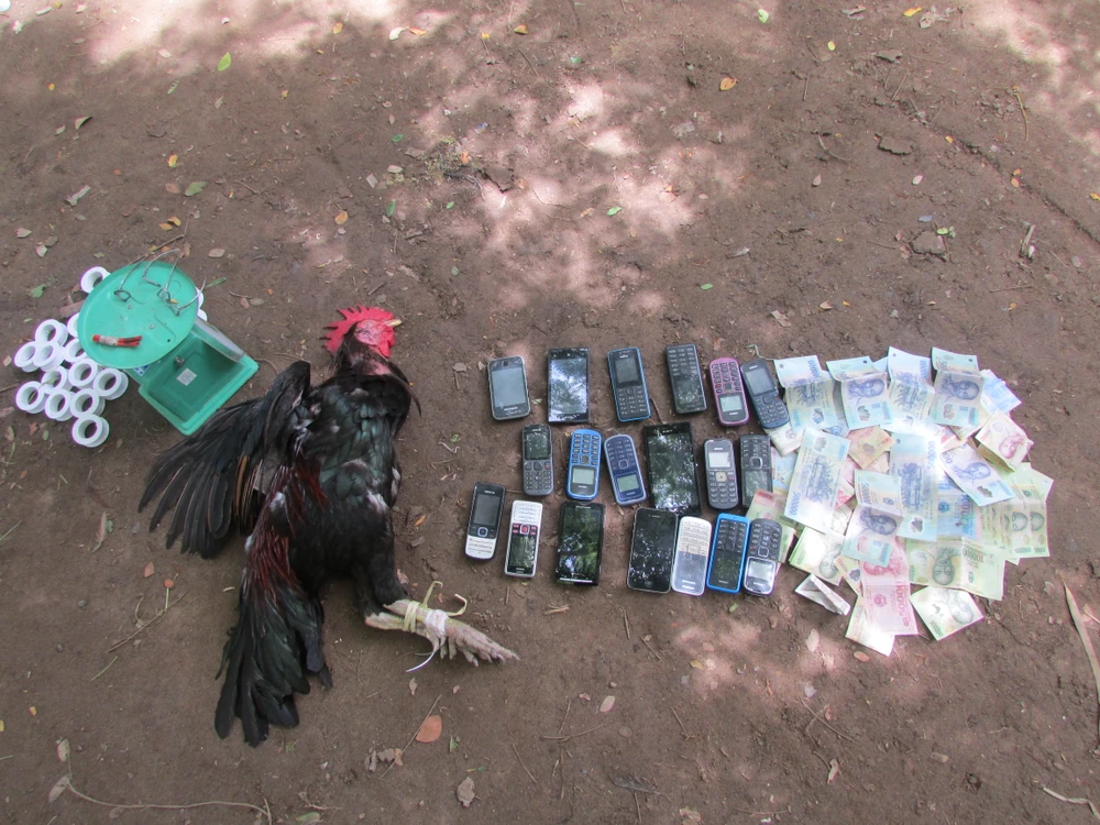 Tang vật thu giữ của các đối tượng tham gia đá gà ăn tiền. Ảnh: Nhẫn Nam.