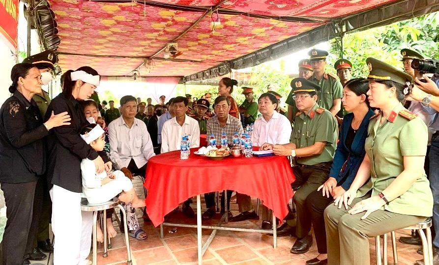 | Đại tá Nguyễn Văn Hiểu, Giám đốc Công an tỉnh, cùng đoàn Đảng ủy Ban Giám đốc Công an tỉnh đến viếng và chia buồn cùng gia đình. |