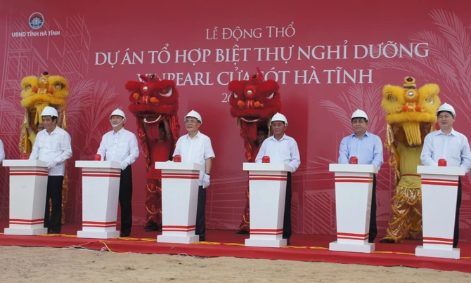 Chiều 26-6, UBND tỉnh Hà Tĩnh và Tập đoàn Vingroup tổ chức Lễ động thổ Dự án tổ hợp biệt thự nghỉ dưỡng Vinpearl Cửa Sót (huyện Lộc Hà, Hà Tĩnh) với tổng mức đầu tư 300 tỉ đồng.