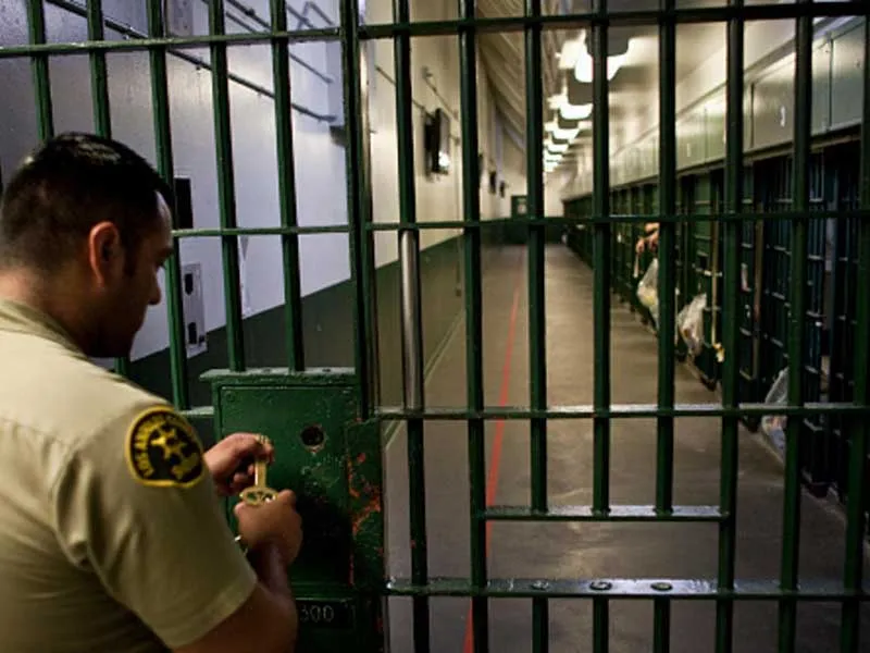 Cảnh sát California mở cửa phòng giam chuẩn bị cho một nghi phạm tại ngoại sau khi đã đóng bảo lĩnh. Ảnh: LATIMES