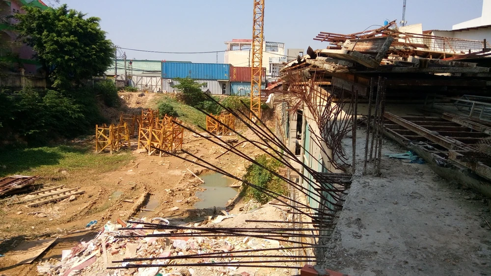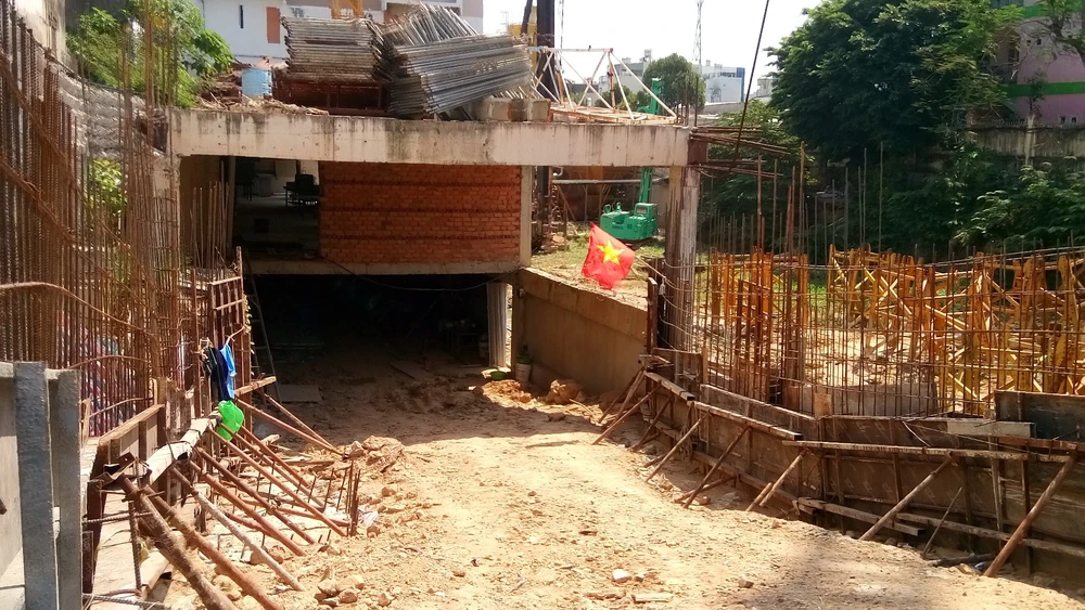 Lối vào cổng chính của dự án trên đường Hoàng Bật Đạt vẫn dở dang, nhân viên chủ đầu tư cho biết phải dừng thi công chờ cơ quan chức năng phê duyệt tổng mặt bằng và cấp giấy phép xây dựng điều chỉnh.