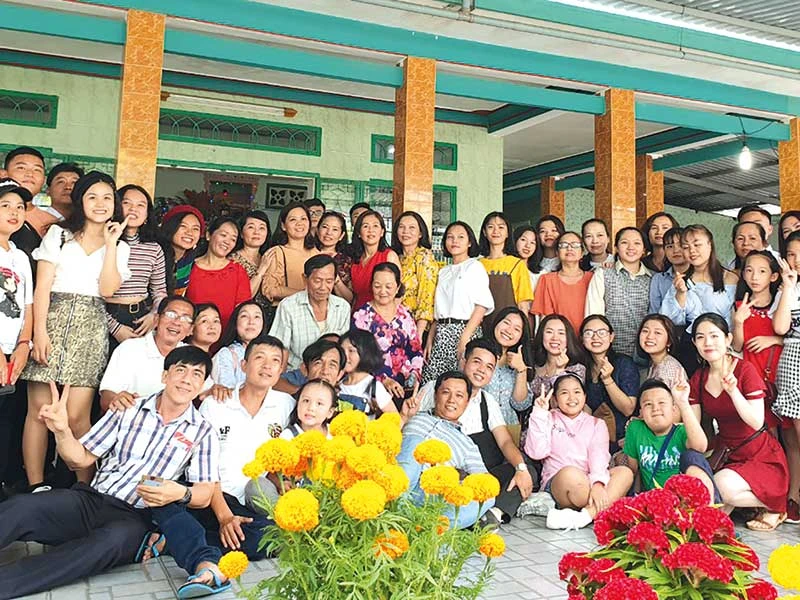 Dòng tộc bà Bảy (xã Trung Chánh, huyện Hóc Môn, TP.HCM) gần 100 người họp mặt mùng một tết. Ảnh: HOÀNG SƠN
