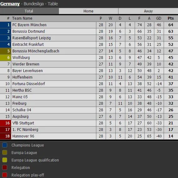 Bảng xếp hạng Bundesliga: