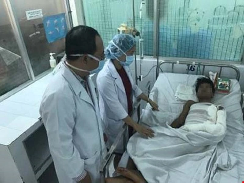 Bệnh nhi nam KT (13 tuổi, ngụ Trà Vinh) nhập viện trong tình trạng bỏng sâu 31% độ 2, 3, diện tích phỏng rộng, không ảnh hưởng đến hô hấp. Sau hơn một tuần nhập viện bệnh nhi được cắt lọc, ghép da lần đầu, hiện tình trạng khá ổn định.