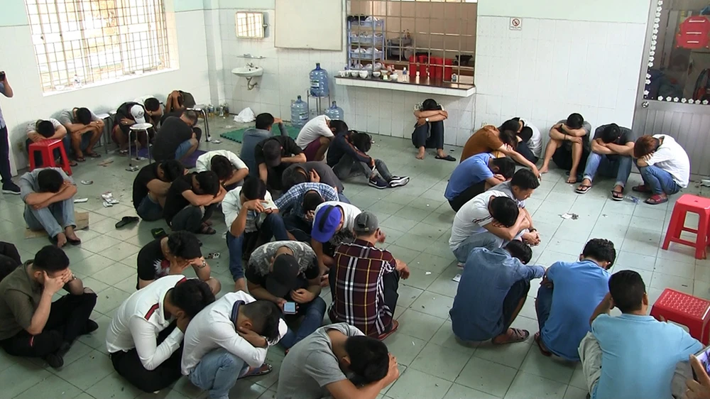Gần 200 dân chơi được đưa về trụ sở công an để kiểm tra. Ảnh HT
