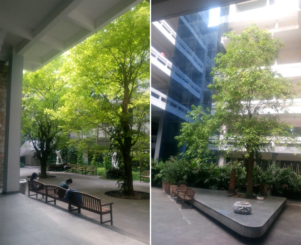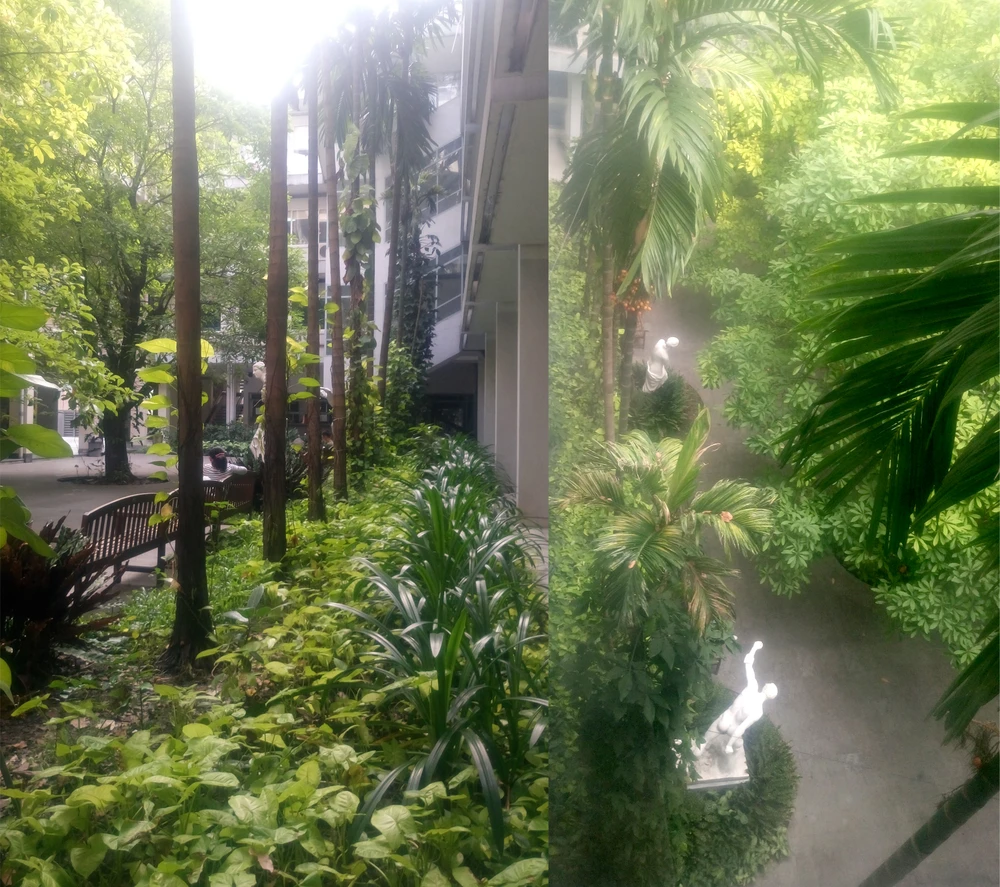 Giờ đây thì với bài tập diễn họa vẽ cây, tượng,... các bạn sinh viên không cần phải la lết công viên, vỉa hè vì ngay trong sân trường đã có những bóng cây thật đẹp và cao vút như trong phim hoạt hình Totoro của bậc thầy Hayao Miyazaki.