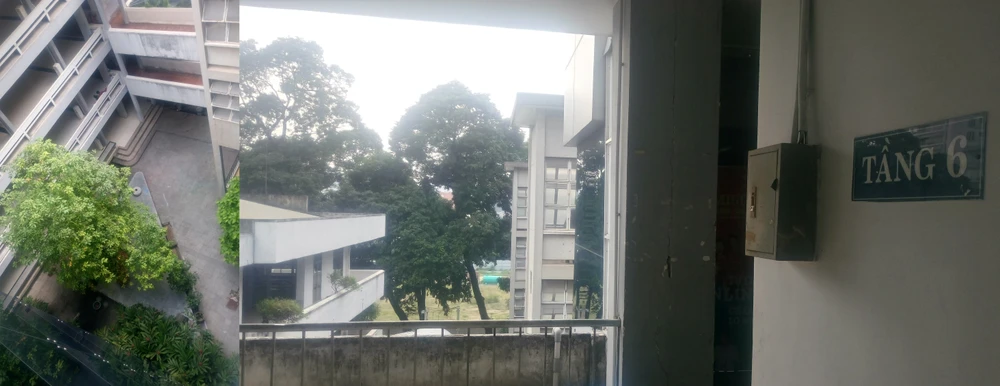 Lọc cọc đi nhờ thang máy với các em sinh viên lên tầng 5 rồi lội bộ lên tầng 6, tôi lại nhớ về năm 2012, lúc nộp bài tốt nghiệp đầy mồ hôi nước mắt. Ảnh: HỒ TRANG