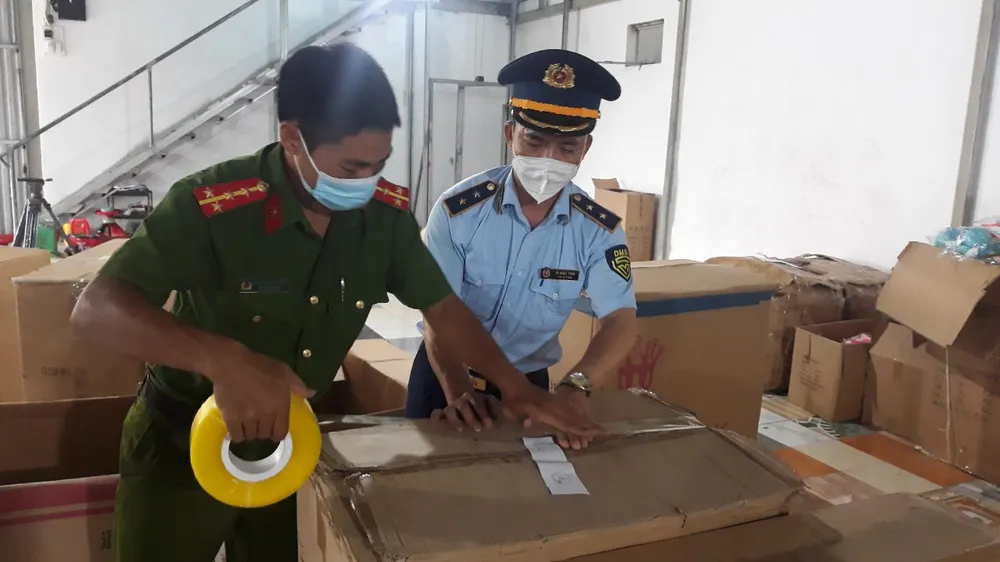 Do số lượng hàng hóa tại kho lớn, Cục Quản lý thị trường Nam Định đã cử Đội Quản lý thị trường số 1, Đội Quản lý thị trường số 2 phối hợp với Công an Nam Định niêm phong để kiểm đếm, phân loại sản phẩm, dấu hiệu vi phạm để xử lý theo quy định.