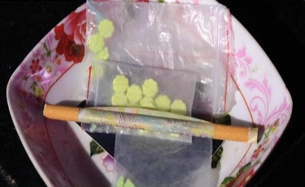 Tang vật thu giữ nghi là thuốc lắc, và dụng cụ dùng để hít ketamine