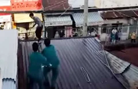 Nam chạy trốn lên nóc nhà và bị bắt giữ sau khi gây án. Ảnh: CTV