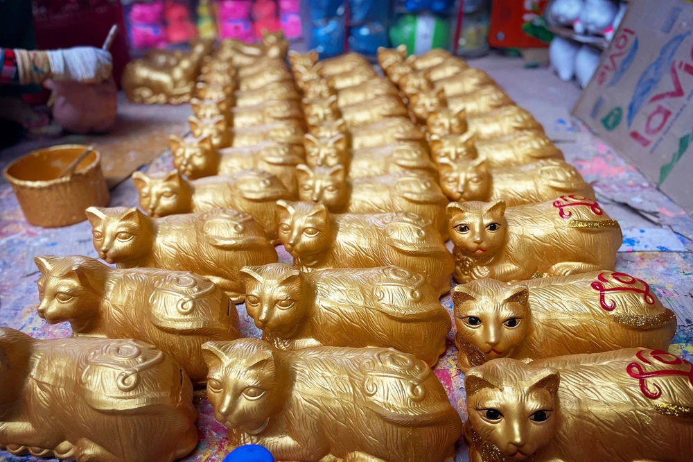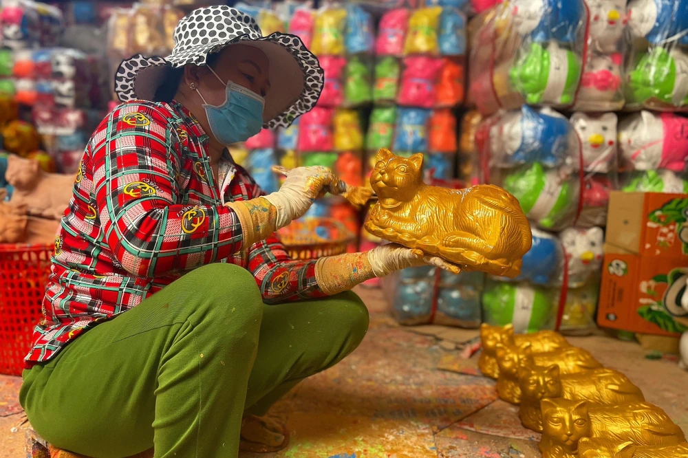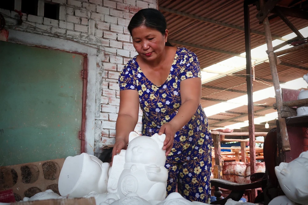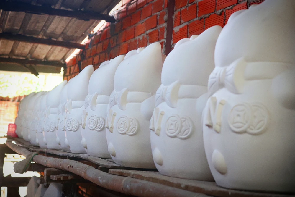 Gắn bó với làng nghề đã hơn 15 năm, bà Vương Anh Đào (chủ xưởng sản xuất phường Lái Thiêu, tỉnh Bình Dương) cho biết, năm nay xưởng của bà cung cấp ra thị trường 5000 chú mèo.