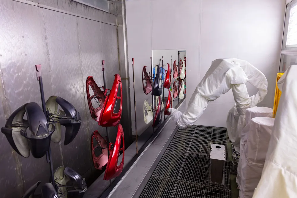 Mỗi chi tiết nhựa được trải qua ba bước sơn: lót, màu, phủ bóng thực hiện bằng 10 robot đảm bảo chất lượng sơn theo tiêu chuẩn quốc tế. Hai dây chuyền chính là sơn nhựa và sơn khung xe máy điện, tự động hóa 95% theo công nghệ Đức. Các chi tiết được đưa qua buồng sơn có hệ thống kiểm soát cân bằng khí tự động giúp đảm bảo độ sạch của không khí trong buồng sơn, khiến chất lượng lớp sơn của VinFast Klara trở nên vượt trội.