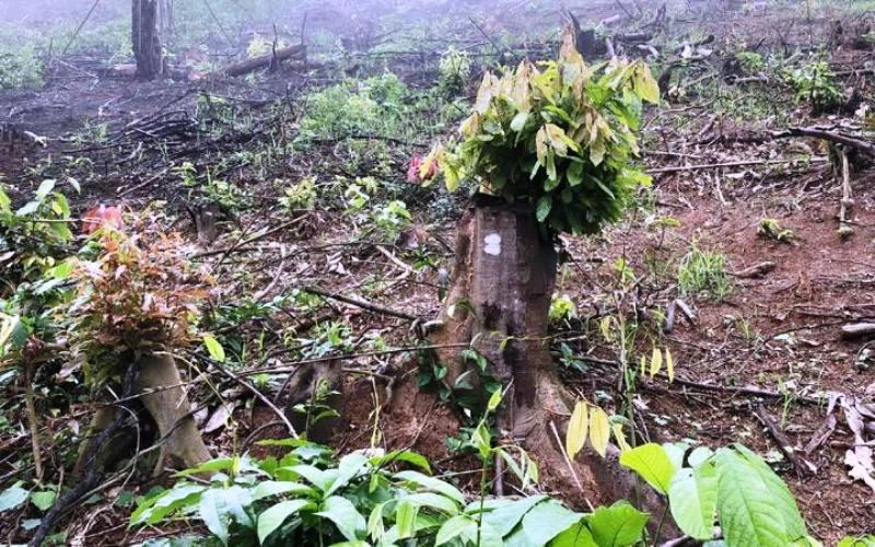 Cây rừng ở xã Lăng Thành bị chặt đốt phá.