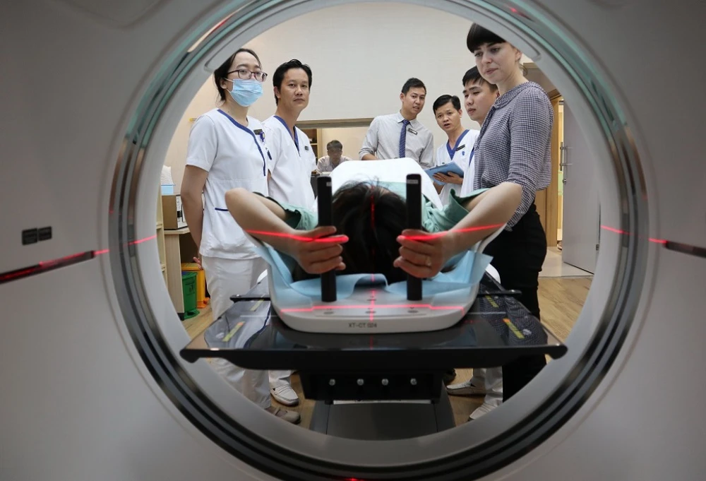 BS Francis Chin Kuok Choon, chuyên gia của ICON, đang có mặt tại Vinmec Central Park để đào tạo, chuyển giao công nghệ cho đội ngũ y bác sĩ tại đây. Trong quá trình điều trị, một êkíp gồm bác sĩ xạ trị, kỹ sư vật lý y khoa và kỹ thuật viên sẽ sử dụng các công nghệ hình ảnh tích hợp trong máy xạ trị để đưa ra phương án chính xác với sai số cho phép chỉ dưới <1 mm. Tất cả các chuyển động đặc thù cho từng khối u và bộ phận cụ thể, từng bệnh nhân đều được tính toán bằng hệ thống “định vị” tối tân thông qua hệ thống quan sát chuyển động cơ thể OSMS tiên tiến và công nghệ mô phỏng 4 chiều (4D). Tia xạ đến khối u được kiểm soát hoàn toàn, giảm thiểu tối đa tác dụng phụ trên mô lành.
