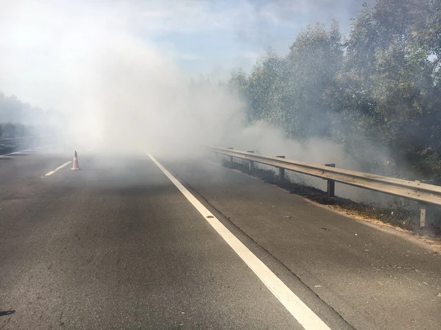 Đốt rác, cỏ khô dọc cao tốc gây nguy hiểm cho phương tiện lưu thông, gây mất an toàn giao thông.