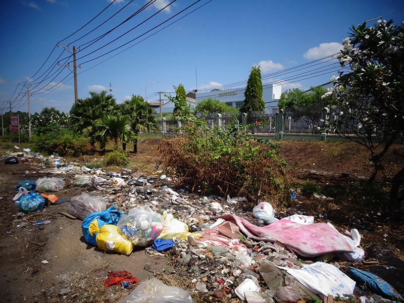 Trên xa lộ Hà Nội, đoạn qua phường An Bình, TP Biên Hòa, Đồng Nai có bãi rác tự phát vừa chiếm đường vừa gây ô nhiễm môi trường (ảnh).