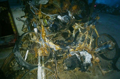 Bốn chiếc xe máy trong cửa tiệm bánh mì bị thiêu rụi.