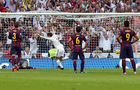 Ngược lại, Real tuy mất Bale bị chấn thương nhưng vẫn hình thành được một thế công mạnh mẽ với bộ ba Ronaldo - Benzema - Rodriguez, trong đó Ronaldo tiếp tục tỏa sáng ghi bàn thứ 21 trong 11 trận liên tục. Riêng đối diện khung thành Barcelona thì đã ghi bàn chín trận. Còn Benzema một lần nữa chứng tỏ luôn có duyên phá lưới đối thủ này bằng bàn thứ bảy của mình.