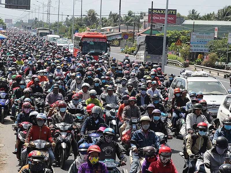 QL1 đoạn qua Tiền Giang kẹt cứng vào mùng 6 Tết, trong khi cao tốc Trung Lương - Mỹ Thuận giảm tải cho đường này vẫn đang gặp khó. Ảnh: HN