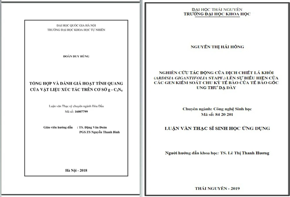 Cụ thể, Dự án “Tăng cường hoạt tính quang xúc tác xử lí ô nhiễm môi trường nước của g-C3N4 bằng hiệu ứng cộng hưởng plasmon bề mặt” của hai học sinh trường THPT Chuyên Hà Nội - Amsterdam, Hà Nội - lĩnh vực Hoá học có dấu hiệu giống với luận văn Tổng hợp và đánh giá hoạt tính quang của vật liệu xúc tác trên cơ sở g - C3N4. Luận văn thạc sĩ do Đoàn Duy Hùng thực hiện và bảo vệ tại ĐH Quốc gia Hà Nội vào năm 2018.
