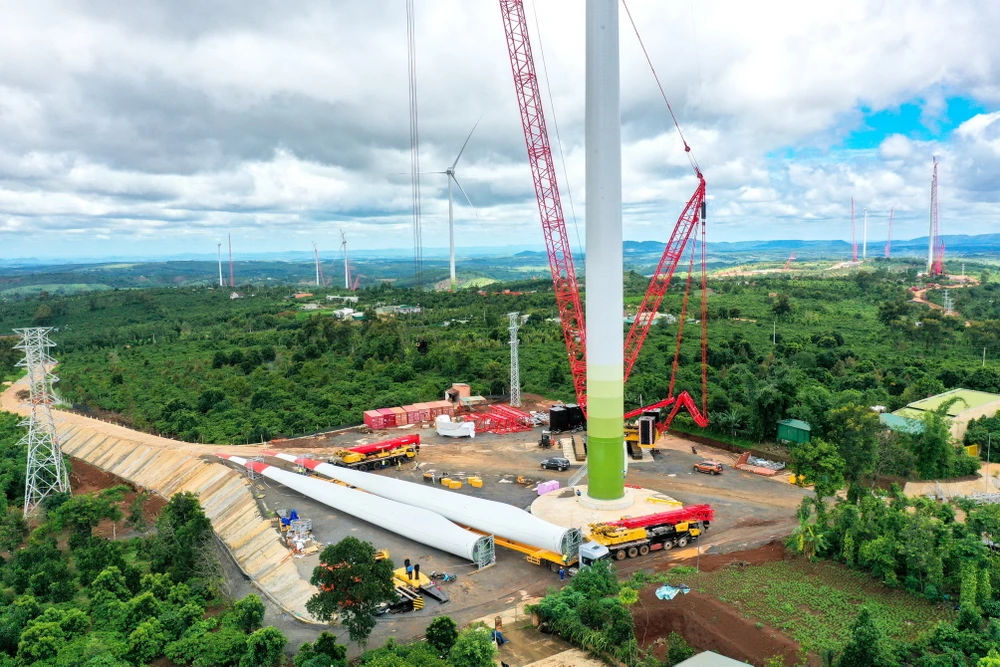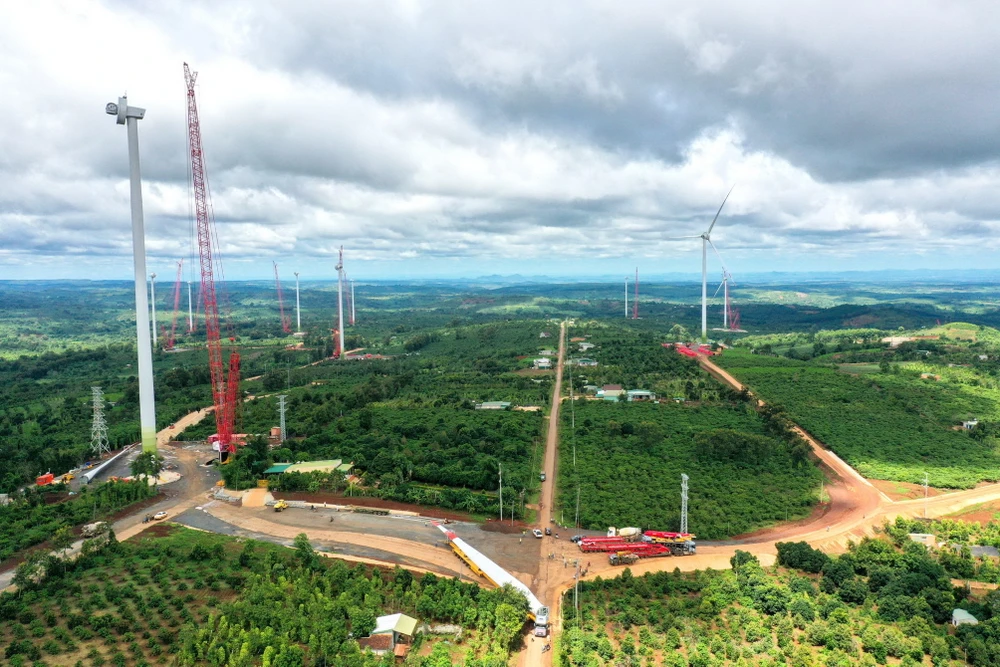 Những ngày này, công trường dự án Nhà máy Điện gió Ea Nam (Đắk Lắk) với công suất 400MW và Trạm biến áp 500KV-450MVA đấu nối chuyển tiếp lên đường dây 500KV Pleiku - Di Linh nhộn nhịp xe ra vào, trang thiết bị được vận chuyển ngày đêm đến chân từng cột gió.