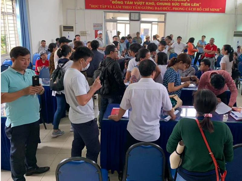 Cư dân dự án Asa Light lên trụ sở UBND để hỏi thông tin về dự án đang bị tạm dừng.