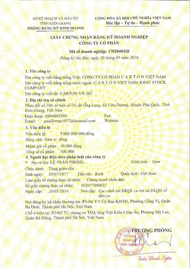 Giấy phép đăng ký tại Việt Nam