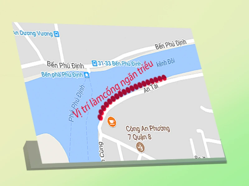 Sơ đồ vị trí làm cống ngăn triều, chống ngập Phú Định, quận 8. Ảnh: TG