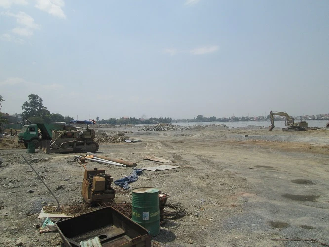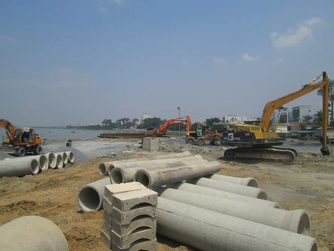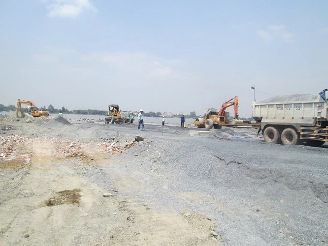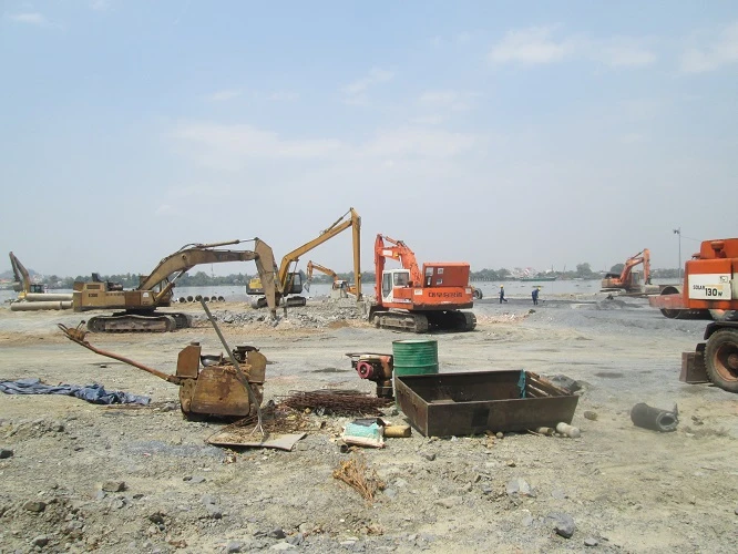 Theo đó, khoảng hơn 7,7 ha mặt nước của sông Đồng Nai đã được san lấp gần xong. Một công nhân đang thi công tại đây cho biết việc san lấp sông đã tiến hành gần xong, chỉ còn lại một đoạn ngắn nữa do còn vướng nhà máy nước Biên Hòa chưa di dời.