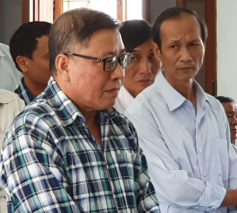 Bị cáo Nguyễn Tài, cựu chủ tịch UBND huyện Đông Hòa (áo ca rô), cho rằng mình không phạm tội. Ảnh: TẤN LỘC