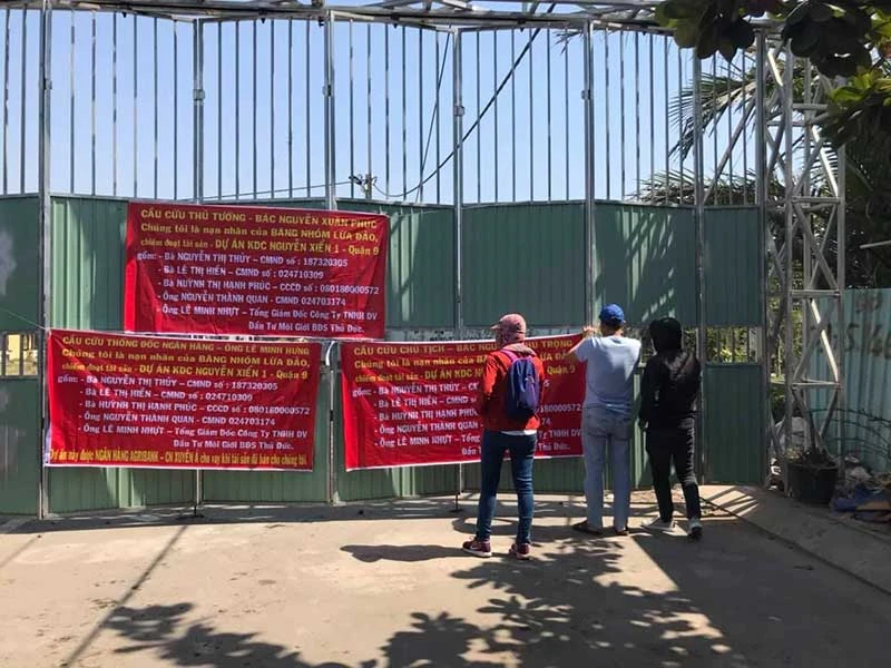 Mới đây, hàng chục khách hàng mua đất tại dự án Khu dân cư (KDC) Bưng Ông Thoàn 2 (phường Phú Hữu, quận 9) đã kéo đến trụ sở Công ty TNHH Dịch vụ xây dựng Thiên Ân Phát căng băng rôn để đòi quyền lợi.