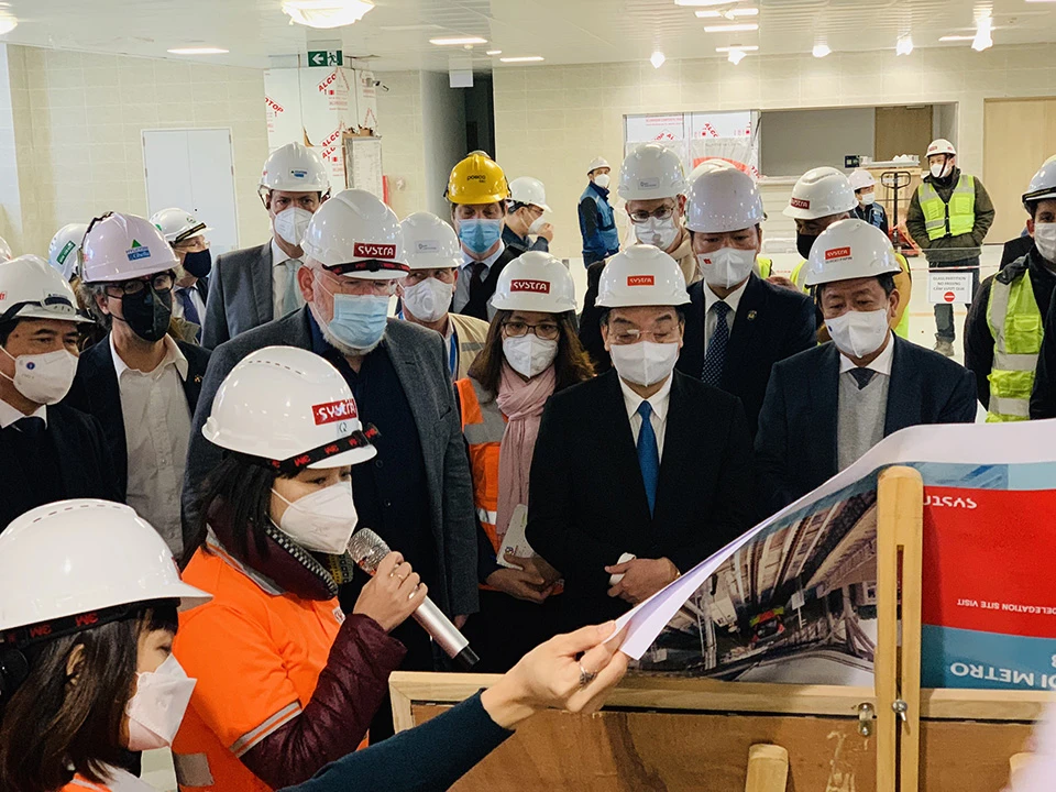 Chủ tịch UBND TP Hà Nội Chu Ngọc Anh cùng Phó Chủ tịch Thường trực Ủy ban châu Âu Francs Timmermans thăm, làm việc tại dự án Metro Nhổn - Ga Hà Nội