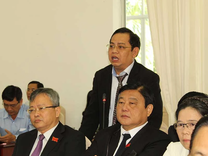 Giám đốc Sở Xây dựng TP Cần Thơ Mai Như Toàn trả lời chất vấn tại kỳ họp HĐND TP Cần Thơ ngày 6-12. Ảnh: NHẪN NAM